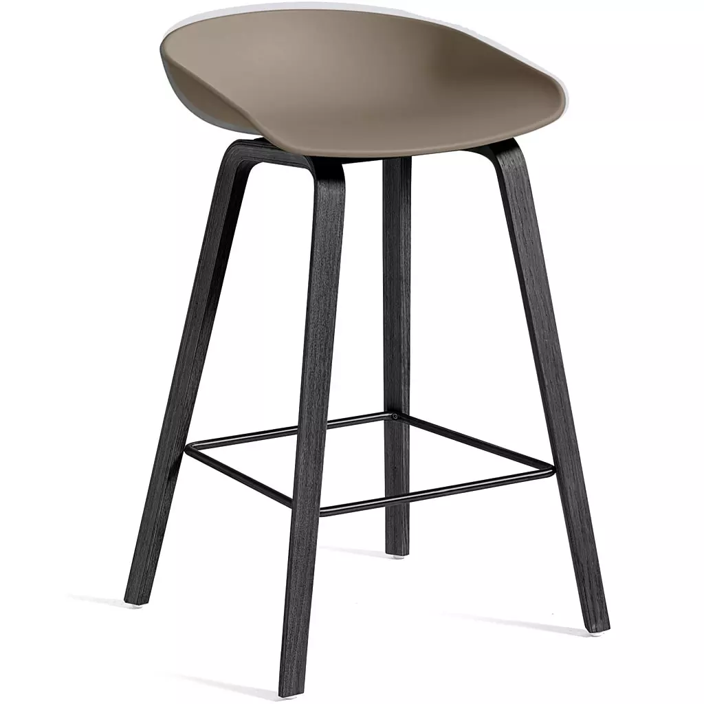 Hay AAS 32 Barhocker Niedrig, Mit Wasserlack Behandelte Eiche Schwarz / Khaki